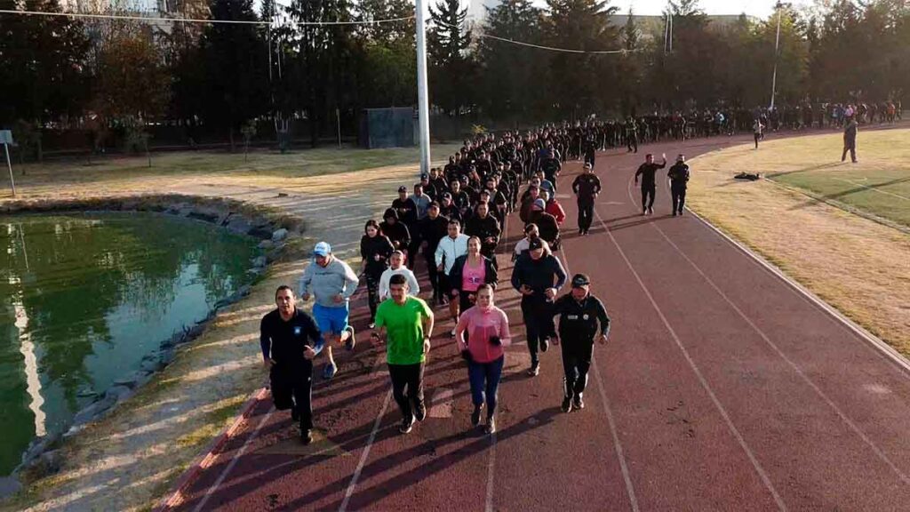Eduardo Rivera encabeza carrera con cadetes de la academia de la policía