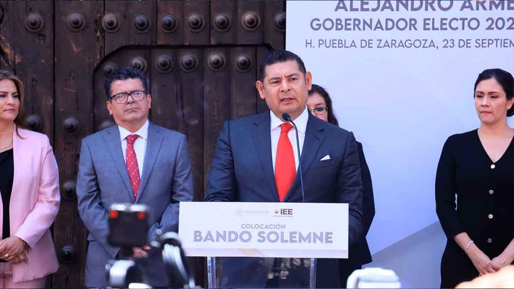 Se llevó a cabo la colocación del Bando Solemne por parte del IEE en las sedes de todos los poderes para la acto solemne es el nombramiento oficial de Alejandro Armenta como Gobernador de Puebla del 14 de diciembre de 2024 al 13 de diciembre de 2030