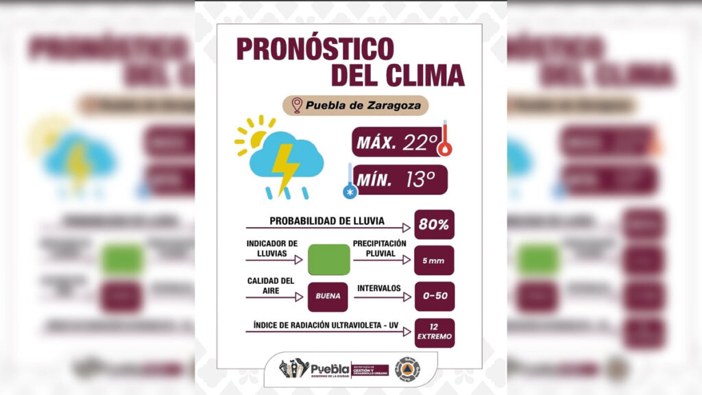 Anuncia lluvia y tormenta eléctrica para Puebla capital