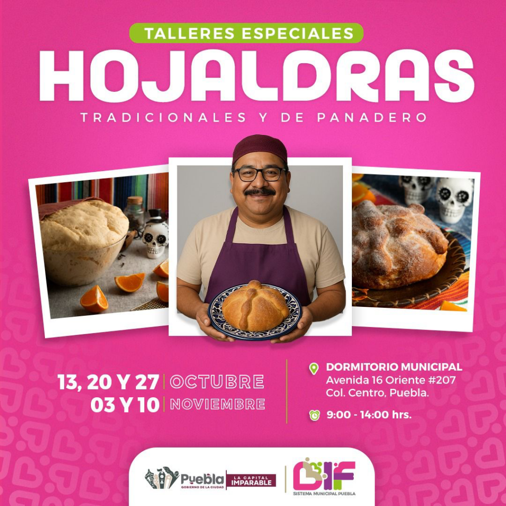 Con el propósito de conservar y promover las tradiciones mexicanas del “Día de Muertos”, el Sistema Municipal para el Desarrollo Integral de la Familia (SMDIF) de Puebla Capital, a través de la Dirección de Programas y Desarrollo, anunció la apertura de inscripciones para dos nuevos talleres estacionales: el “Taller de Hojaldras Tradicionales” y el “Taller de Crochet para Noche de Brujas”. Estas actividades buscan fomentar la creatividad y fortalecer los lazos familiares durante las festividades de temporada.