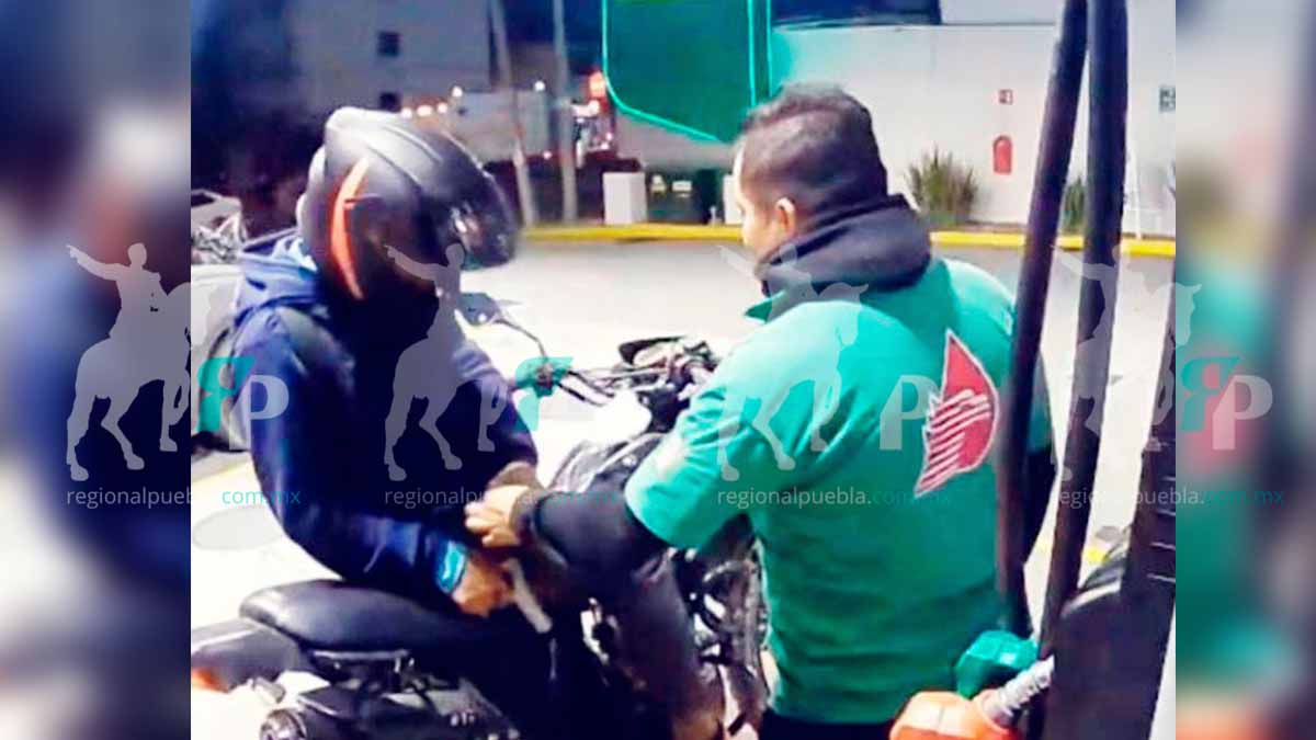 Un motociclista asaltó con violencia a un despachador de una gasolinera ubicada sobre Bulevar Clavijero de la capital de Puebla. Según los primeros reportes, el individuo llegó la madrugada de este domingo a bordo de una motocicleta y se formó como cualquier cliente. Cuando el trabajador se acercó para atenderlo, el sujeto sacó un arma de fuego y lo amagó.