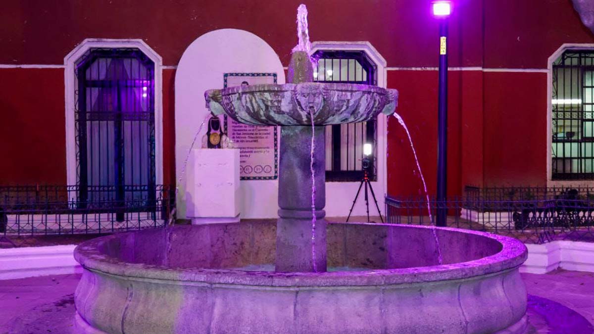 Las labores incluyeron el retiro de protecciones y luminarias existentes, la instalación de línea eléctrica hacia el medidor, así como trabajos de pintura en la estructura de la fuente. Además, se efectuó la sustitución de una bomba centrífuga y la renovación de la línea hidráulica que permite el correcto funcionamiento del sistema de agua.