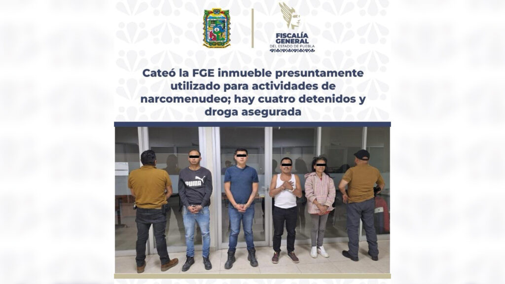 Cateó la FGE inmueble en la ciudad de Puebla presuntamente utilizado para actividades de narcomenudeo; hay cuatro detenidos.
