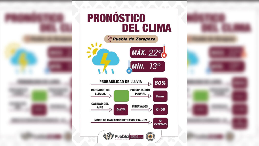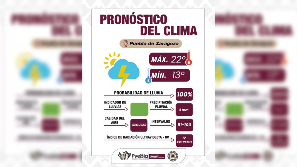 Domingo lluvioso y con tormentas eléctricas para Puebla capital