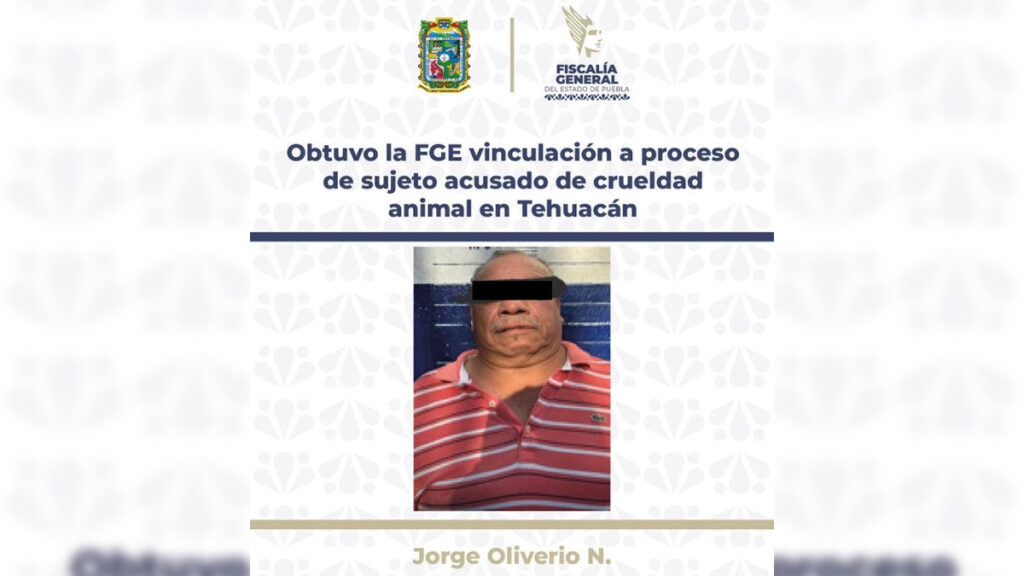 La Fiscalía de Puebla vinculó a proceso a Jorge Oliverio “N” por la muerte de un perro llamado “Capitán”, tras propinarle una golpiza y atacarlo con un machete en Tehuacán. El imputado enfrenta cargos por delitos contra los animales mediante actos de crueldad.