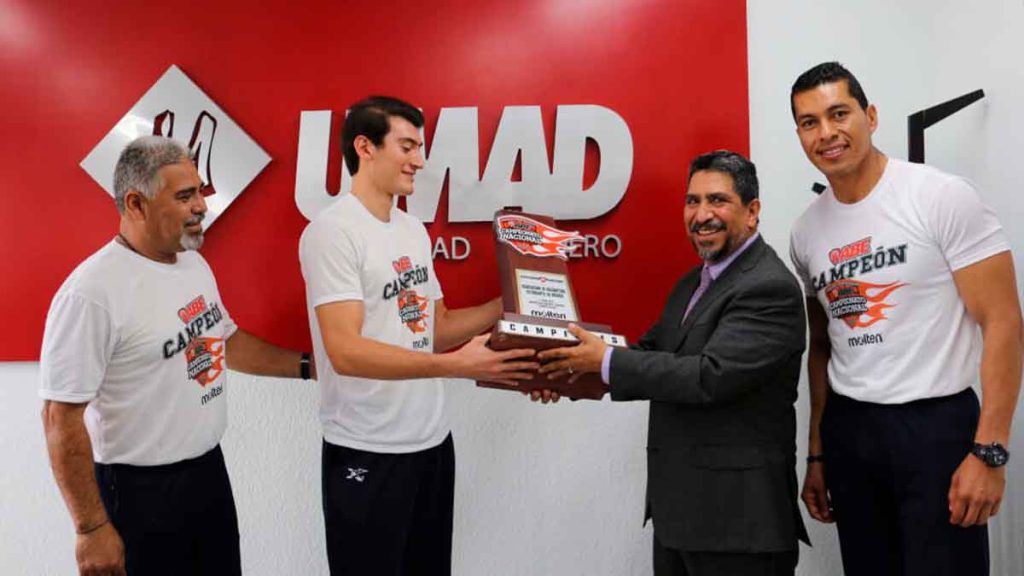 Entregan trofeo de campeón nacional de la Liga ABE al rector de la UMAD
