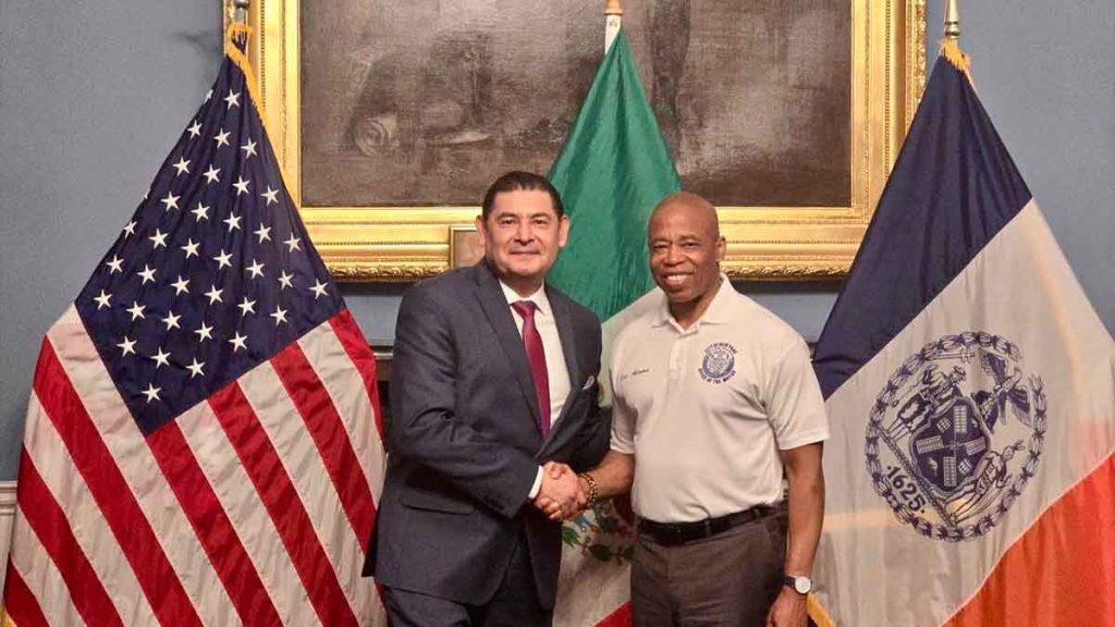 El mandatario estatal sostuvo un encuentro con el alcalde de Nueva York, Eric Leroy Adams y con líderes migrantes